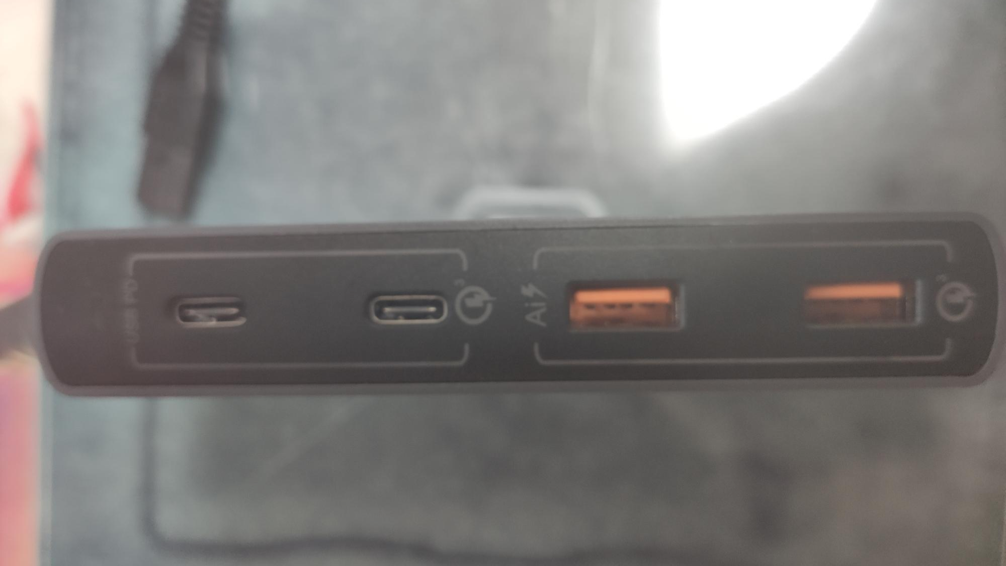 오른쪽 두 포트는 퀵 차지 3.0을 지원하는 포트입니다