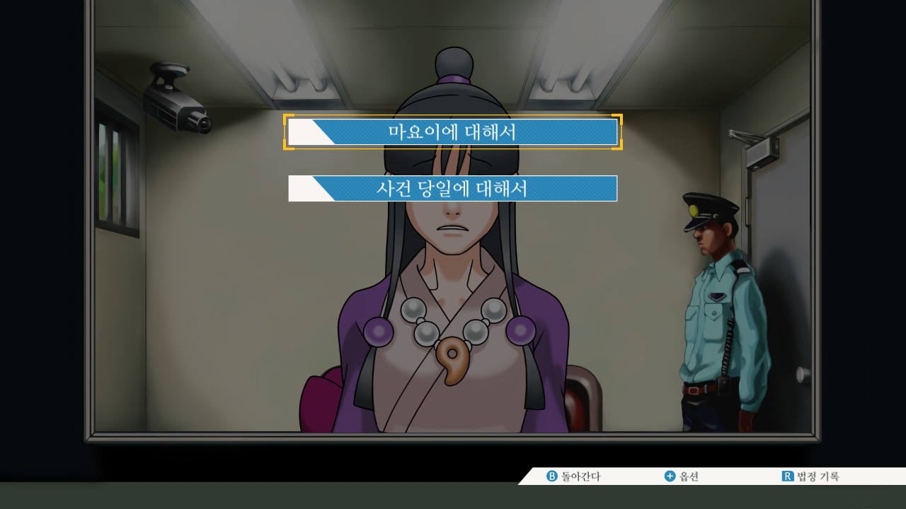 이 게임의 무대는 두 개로 나뉘는데 사건이 일어난 후 각종 단서를 모아서 변호를 준비하는 과정을 먼저 거치고 법정에서 검사와 법정 공방을 펼치게 됩니다.