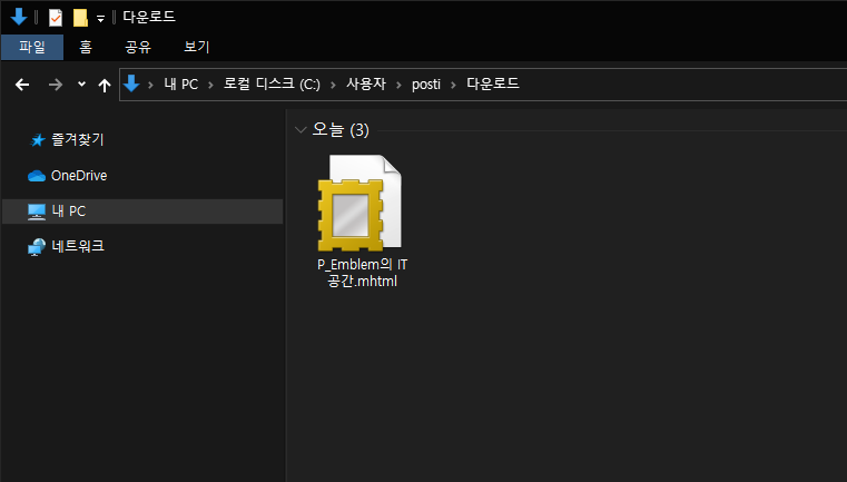 위 사진처럼 mhtml이라는 파일로 저장되죠. 해당 파일 역시 웹 브라우저를 통해 실행할 수 있습니다.